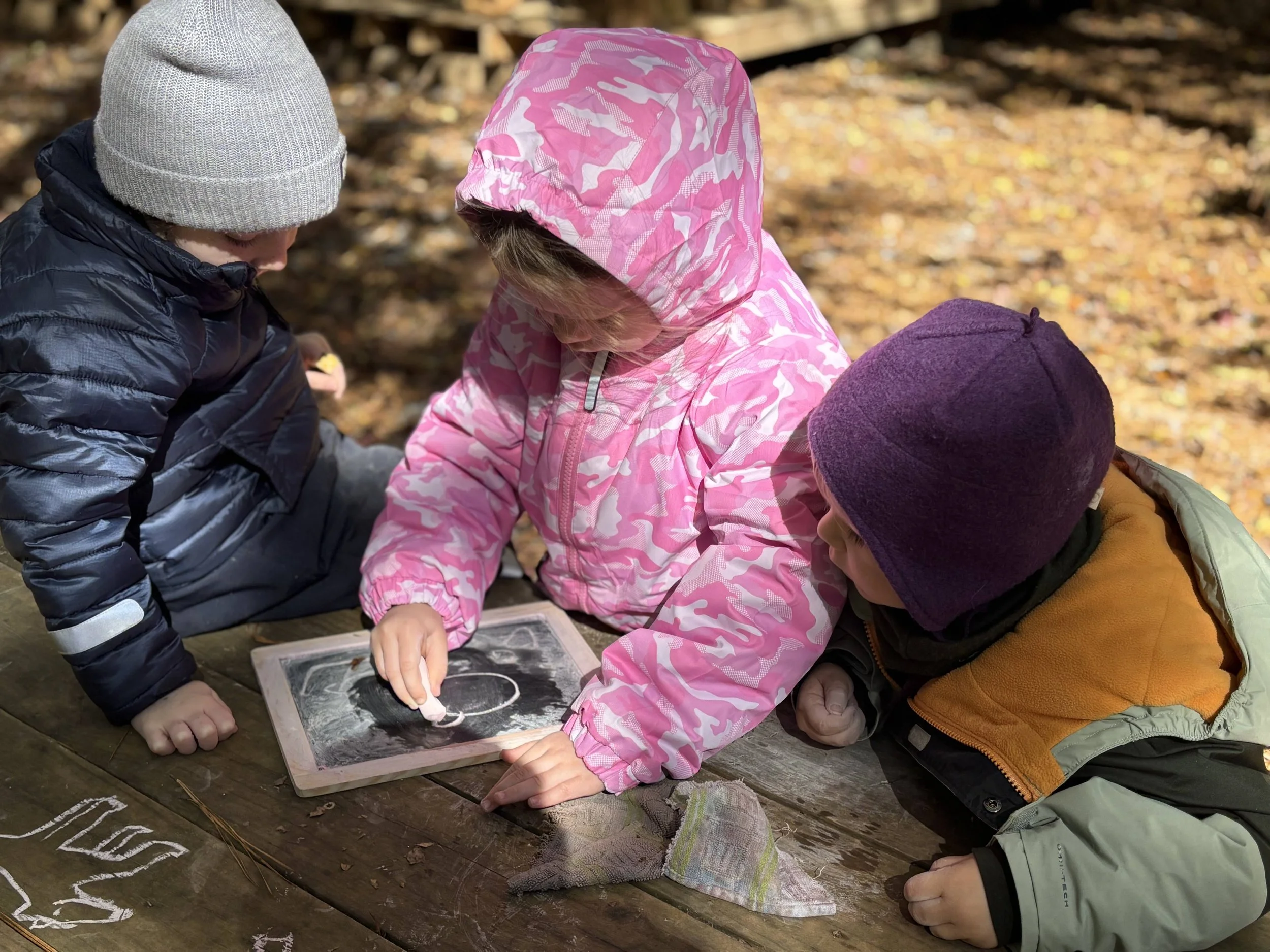 We began our week with brisk, chilly mornings that gave way to golden, sunlit afternoons. Thank you for dressing the children in warm, comfortable layers, which allows them to move comfortably and remain content throughout our outdoor days. Our week was full of delightful surprises and joyful discoveries. For the first time, the children played at the large playground, where they delighted in the wide open space to run, explore, and crunch through the autumn leaves. The tire swing and tetherball brought laughter and cooperation, and to our surprise, we even experienced snow flurries.