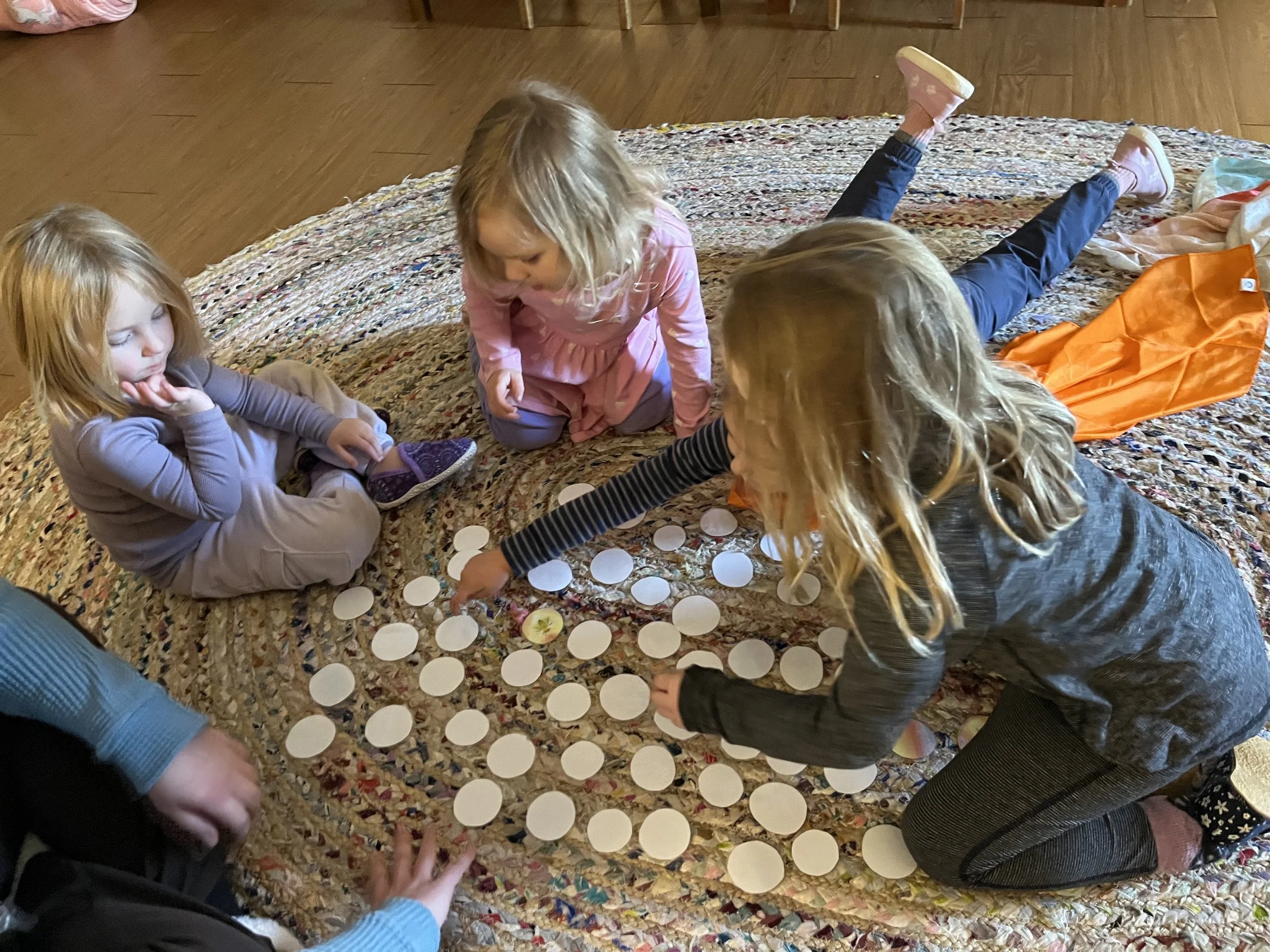 Our story, this week and last, was the Ukrainian folk tale, The Mitten. The students love this sweet and silly adventure story. We enjoyed both a puppet show and a play of our story. The children watched with rapt attention as the puppet show unfolded, each animal huddling into the mitten as it stretched… and stretched… and stretched. During the play, giggles filled the room as the students played the parts of grandmother and child, and the varied forest animals who were squeezing into the cozy mitten. It was especially fun when the bear sneezed, the mitten flew into the air, and all the animals tumbled out. There was laughter from the whole class as Nikki showed his grandmother that he still had both of his mittens, “one was the size of Nikki’s hand, and the other was the size of Nikki.”