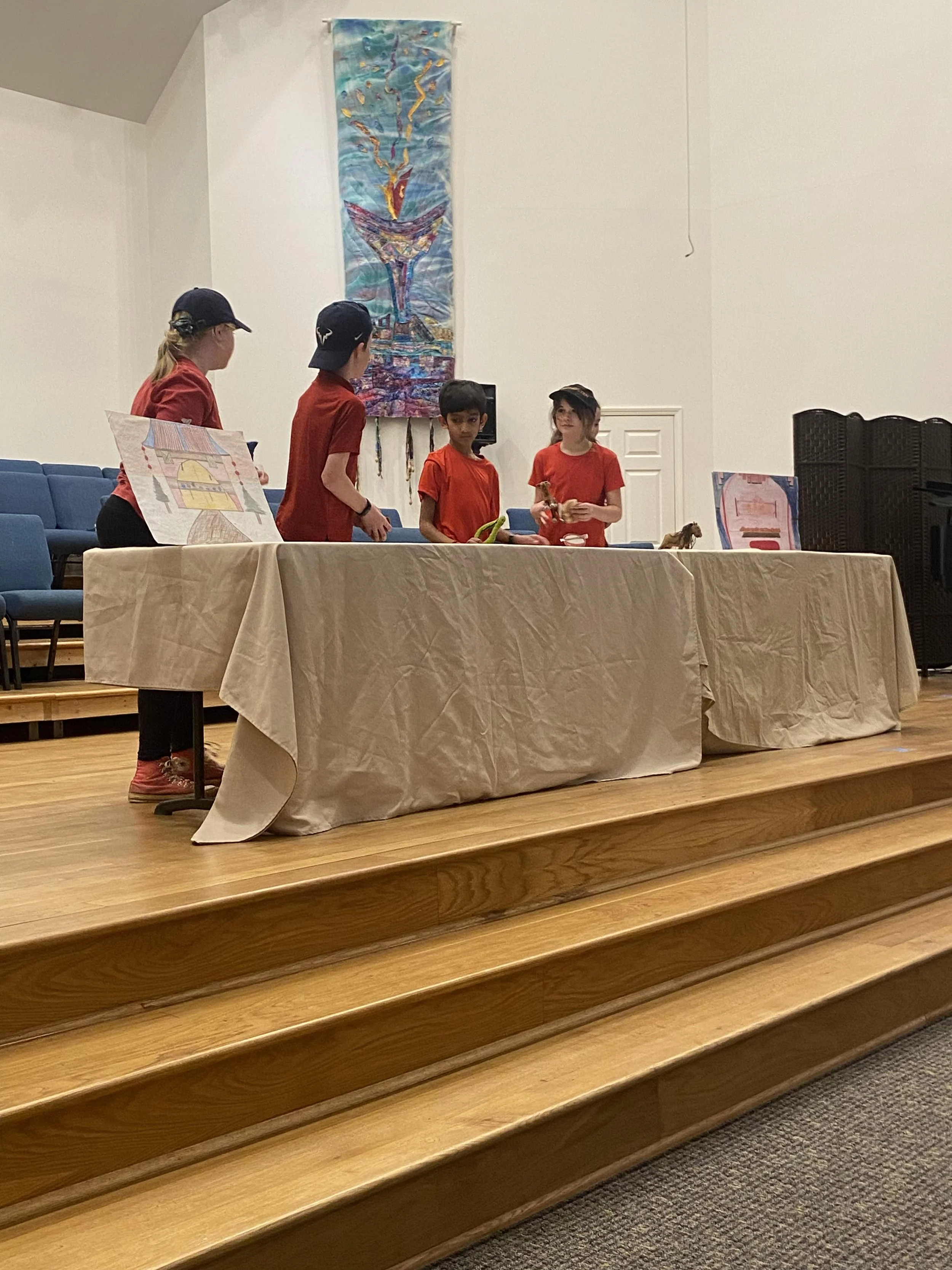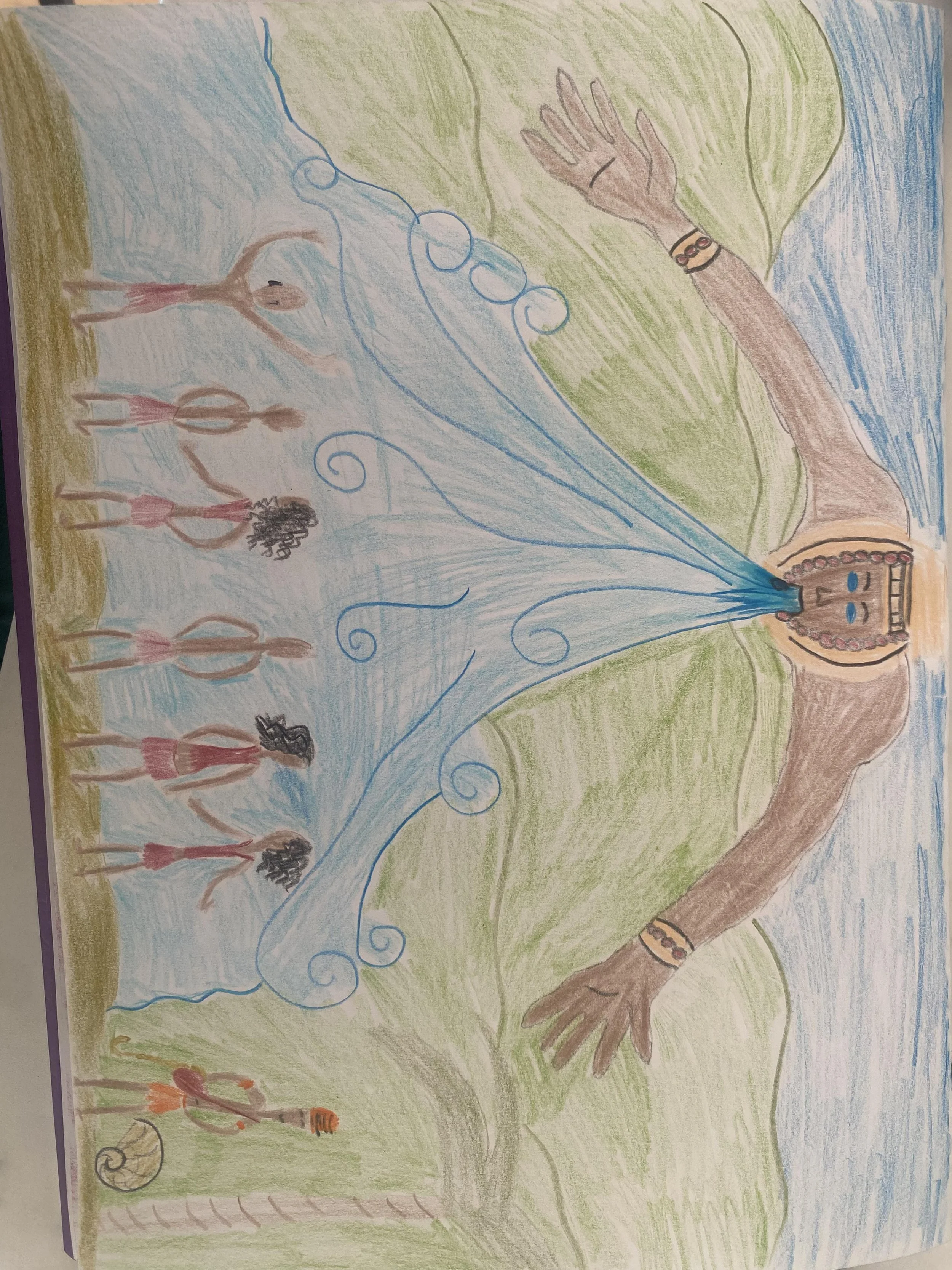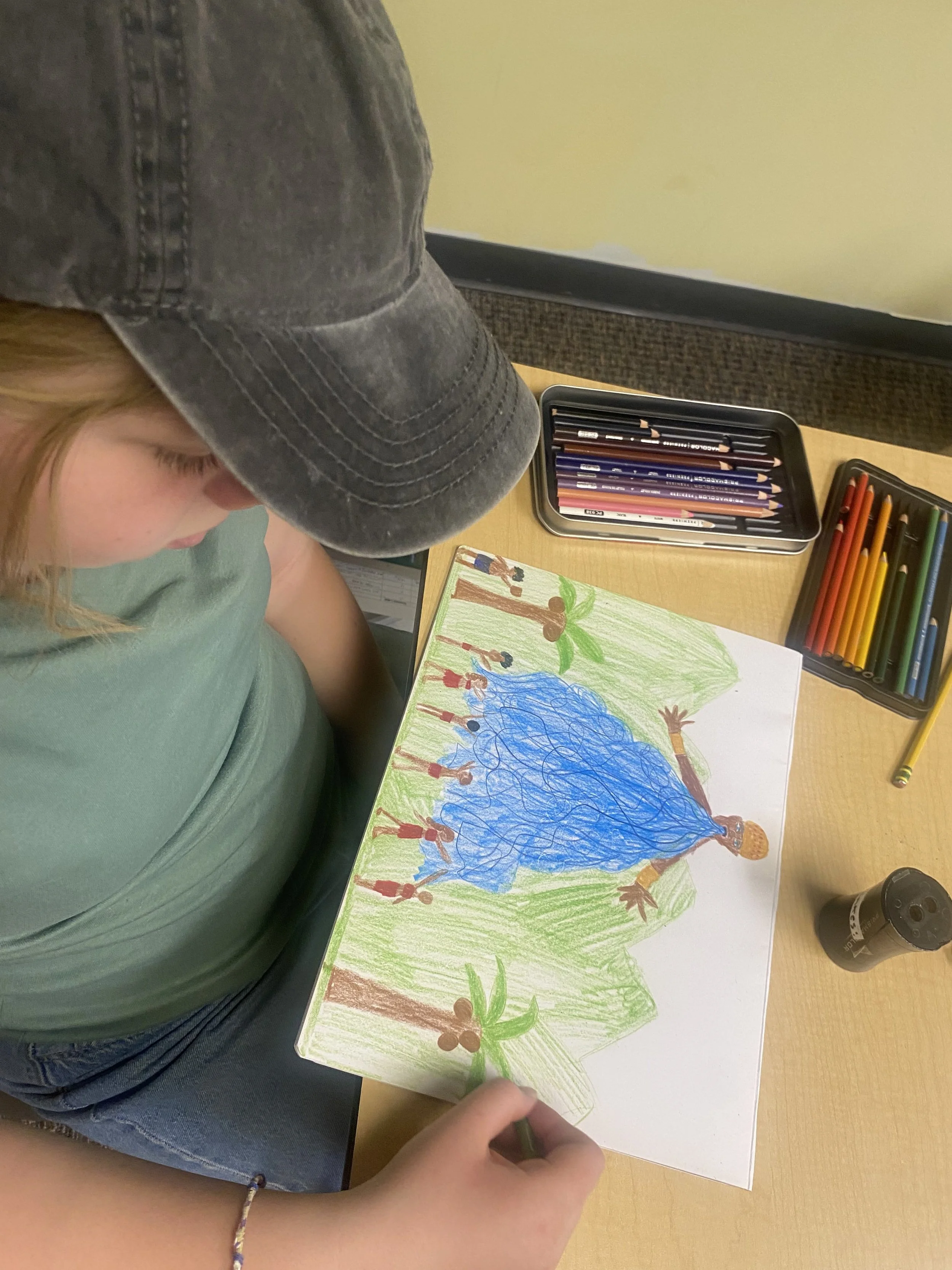 After wrapping up Ashanti mythology in the previous week, the class learned about the Yoruba region of West Africa (southwestern Nigeria, parts of Benin, and Togo). We compared and contrasted the Yoruba and Ashanti creation stories. We also dove into learning about the Orishas, or the demi-gods, of the Yoruba pantheon: Obatala, Yemaya, Shango, Oshun, Eshu, Oya, and Ogun, which are commonly known as the Seven Yoruba Powers. The class started their group diorama project. Like the Yoruba creation story, they created human figures out of clay. When the class returns, we will continue to assemble the rest of their ancient Yoruba civilization.