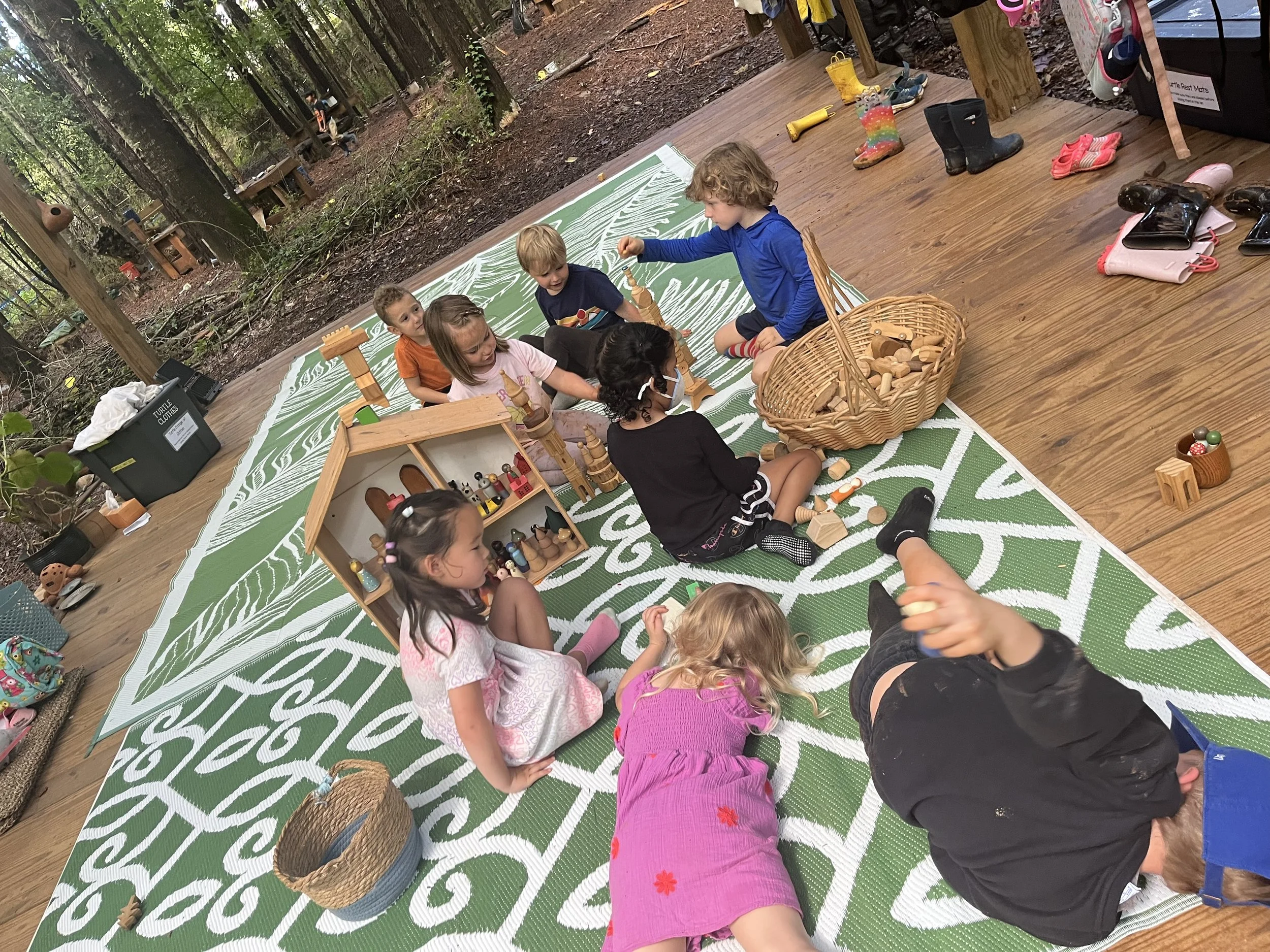 The week was all about settling in, getting to know each other, and becoming familiar with our space. We also began to establish a gentle rhythm to guide us through our days together. We enjoyed a story about a Mommy Cloud and a scared little raindrop who gathered up its courage to fall to the earth. There, the little raindrop finds raindrop friends, and together they journey into the roots of a plant. They climb the stem to the top and help a flower bud blossom. They play on the flower petals until the afternoon sun is bright in the sky, then Mommy Cloud, with the sun’s help, collects them all again. It was a pleasure to sit together on our platform and enjoy story time, snacks, lunch, and rest. The children eagerly conversed with one another and with their teachers; our beautiful class community is already beginning to blossom. We had a wonderful first week, and we are so excited to spend this school year together, learning and growing in the Turtle class. Thank you for sharing your children with us!