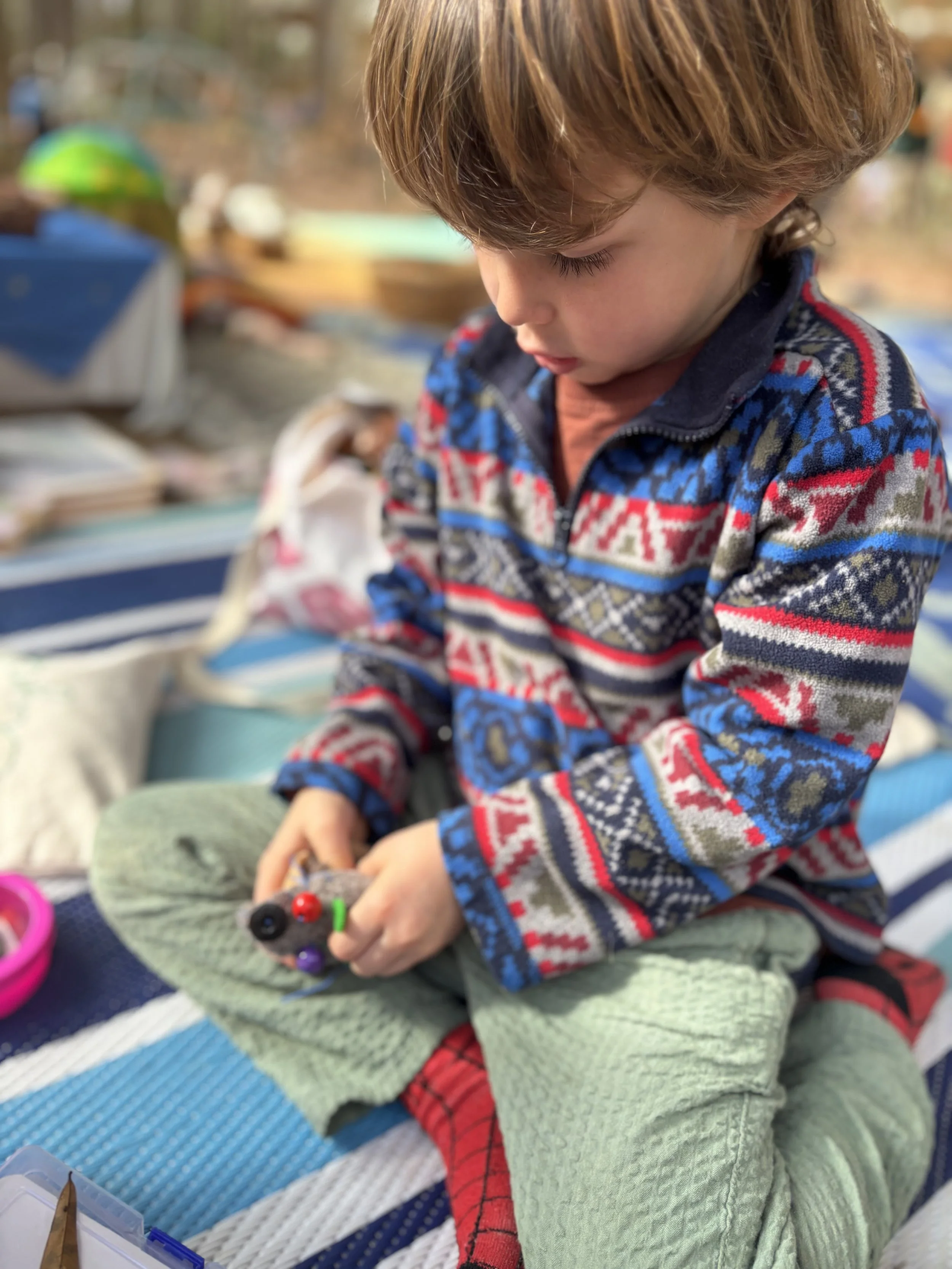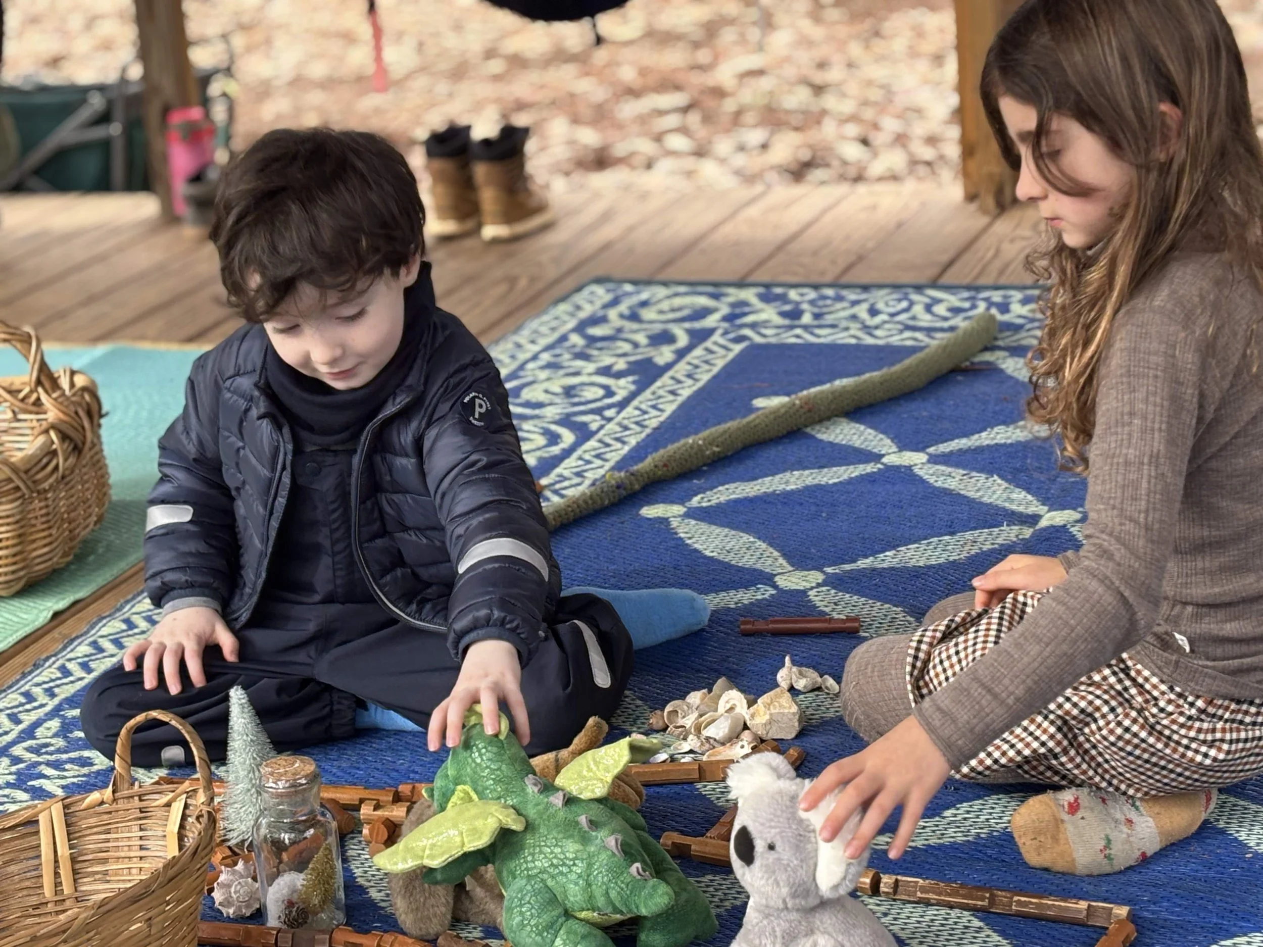 We hope you enjoyed a nourishing and restful long break with family and loved ones. It was a joy to reunite and gently return to our shared rhythm in the forest. The weather welcomed us back with an unseasonably springlike quality, offering rich opportunities for observation. The children noticed the increased activity of birds and squirrels, who seemed bolder than before, coming closer to our gathering spaces. A beautiful moment was spotted as two hawks perched side by side on a tree branch, an experience that invited wonder and reverence for the natural world.