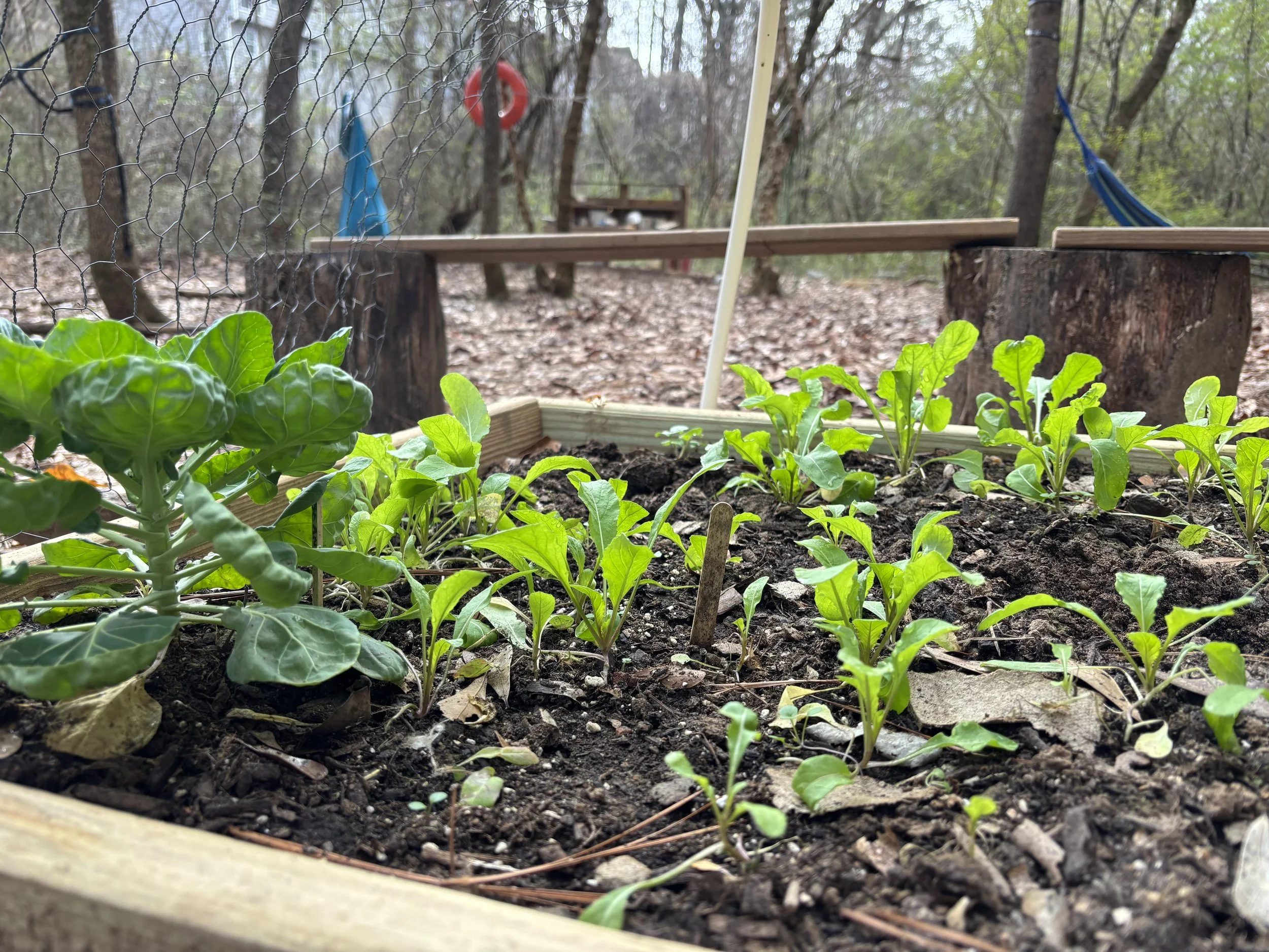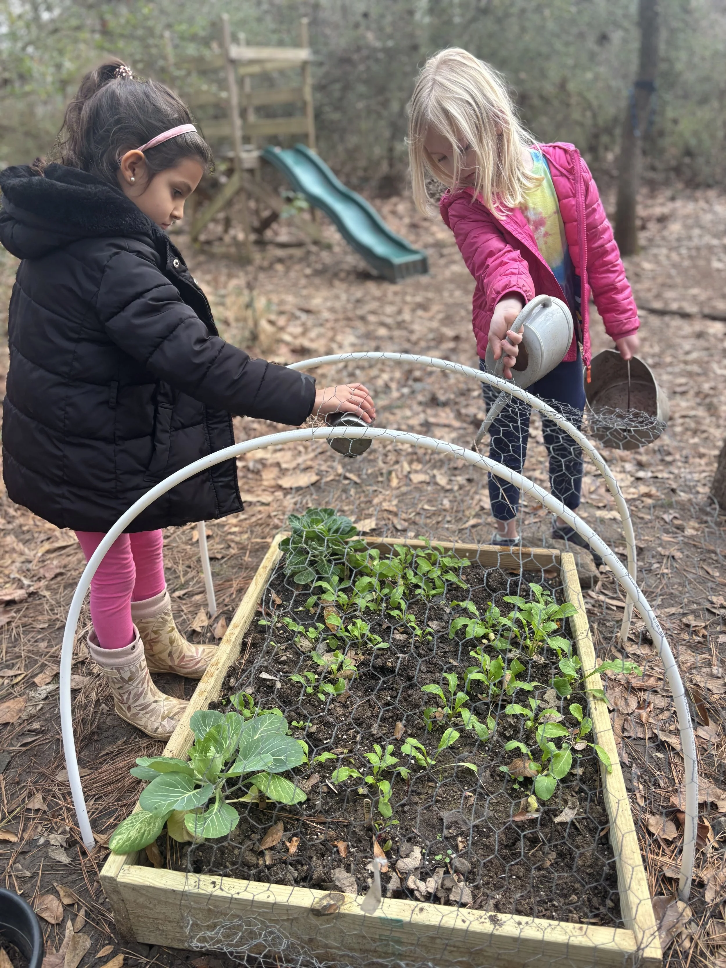 Upon the return to our classroom, the children immediately observed the transformation of our nature table, which had shifted from autumn to a winter scene. This seasonal change supports the children’s developing sense of time and rhythm and strengthens their connection to the cycles of the year. They delighted in the evergreen trees, the sleigh, and the winter elements, which serve as visual anchors for imaginative play and storytelling. In our garden bed, we were pleasantly surprised to find that the vegetables had continued to grow during our time away, a lesson in patience, care, and the quiet work of the earth.
