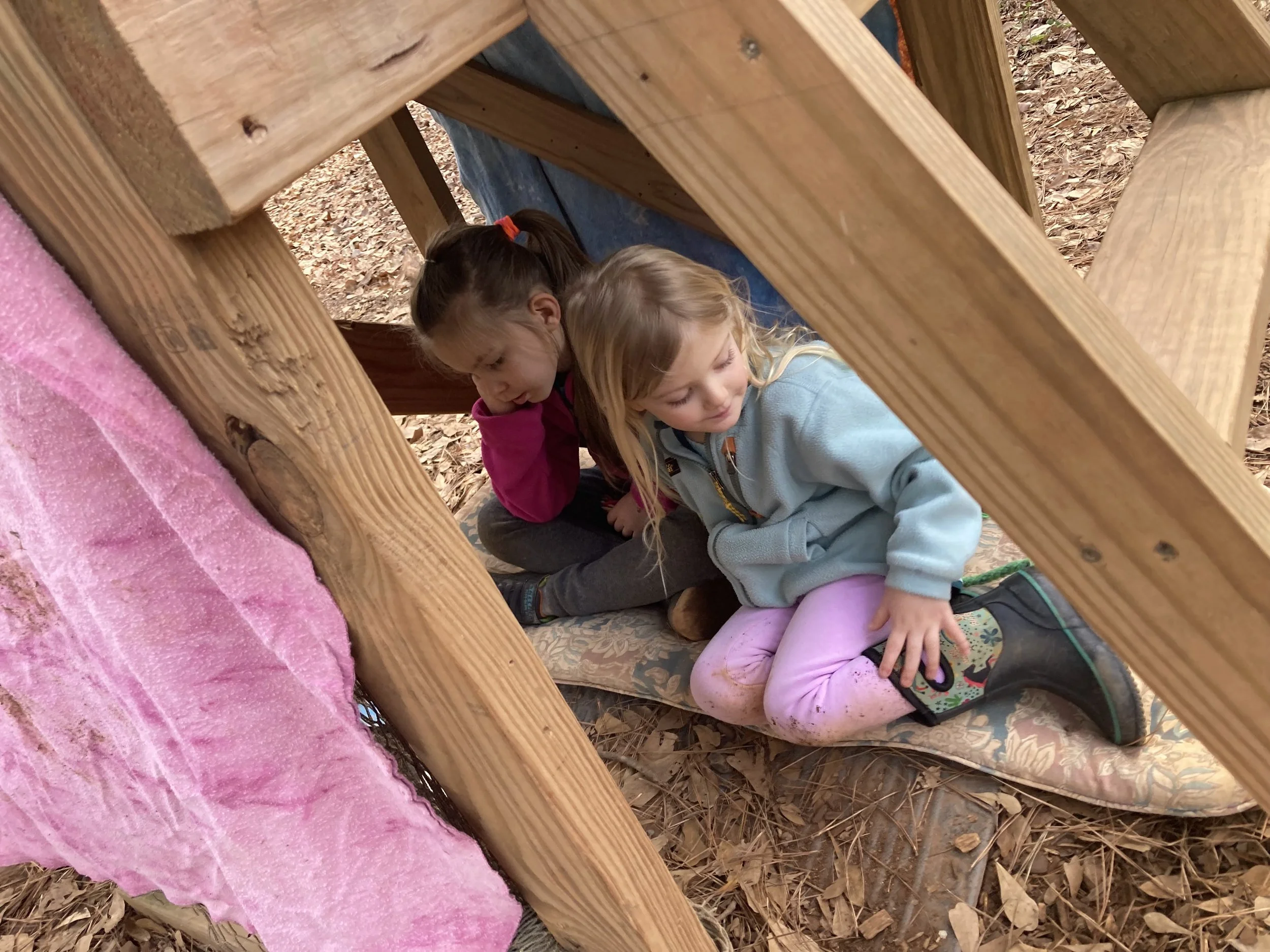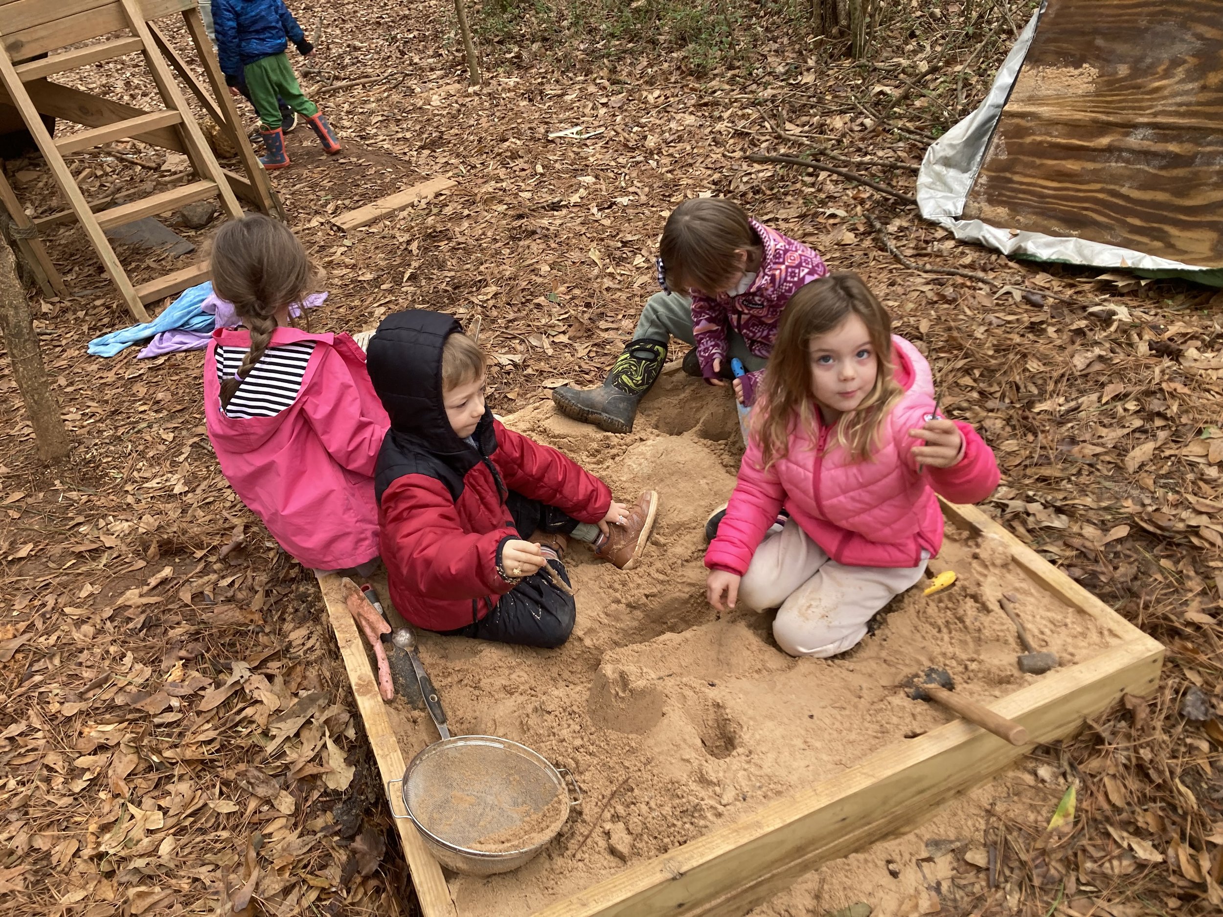 This week, the students spent time reconnecting to each other, the outdoor classroom environment, and the rhythm of the school days and week. They enjoyed drawing, stretching, breathing exercises, a visit to the farm, and a nature walk. The warm and dry weather allowed the students to explore all of the different ways to play in the outside classroom, including the sandbox, digging on Honey mountain, building and driving dump trucks on roads, making forts, and experimenting with simple machines like see-saws. It will be interesting to see what adventures the rest of the month brings!