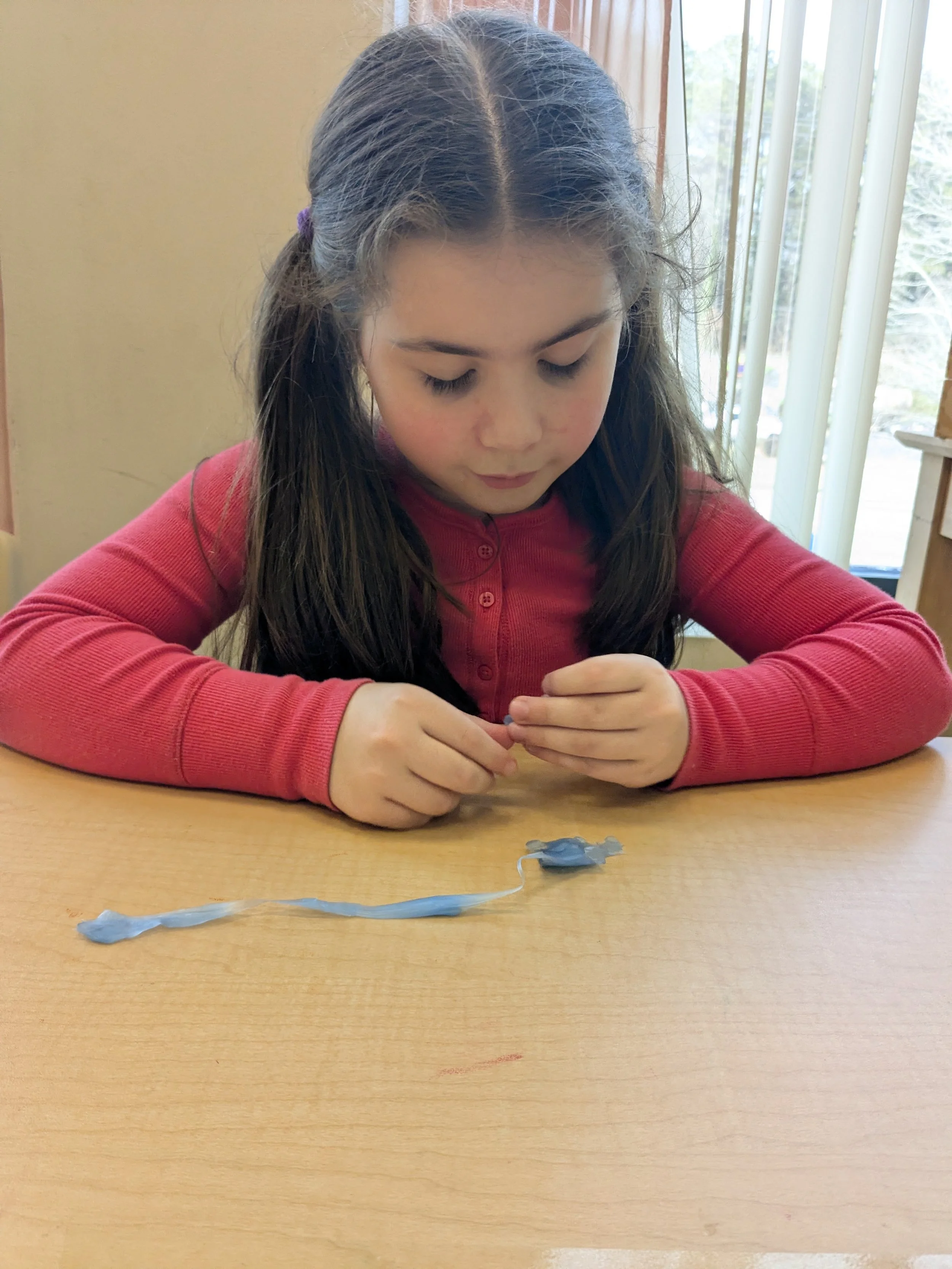 With gusto, the class has jumped back into Math after focusing on Language Arts in December. During this block, students will further develop their number sense through exploring concepts such as doubles and near doubles when composing (building) and decomposing (breaking down) numbers. Through active math activities like skip counting along a giant number line in Circle, students will strengthen their awareness of patterns and the numbers’ relationships to each other. Last week, the class was captured by a story of a rabbit family evading a fox by scurrying into their burrow. Students modeled beeswax rabbits and carrots for the story and then drew a pictorial representation of the two sister bunnies who make it into the burrow first while the parents above ground exhort the youngest bunny to drop the carrots he is munching to head for safety. There are more vibrant math stories and vignettes to come!