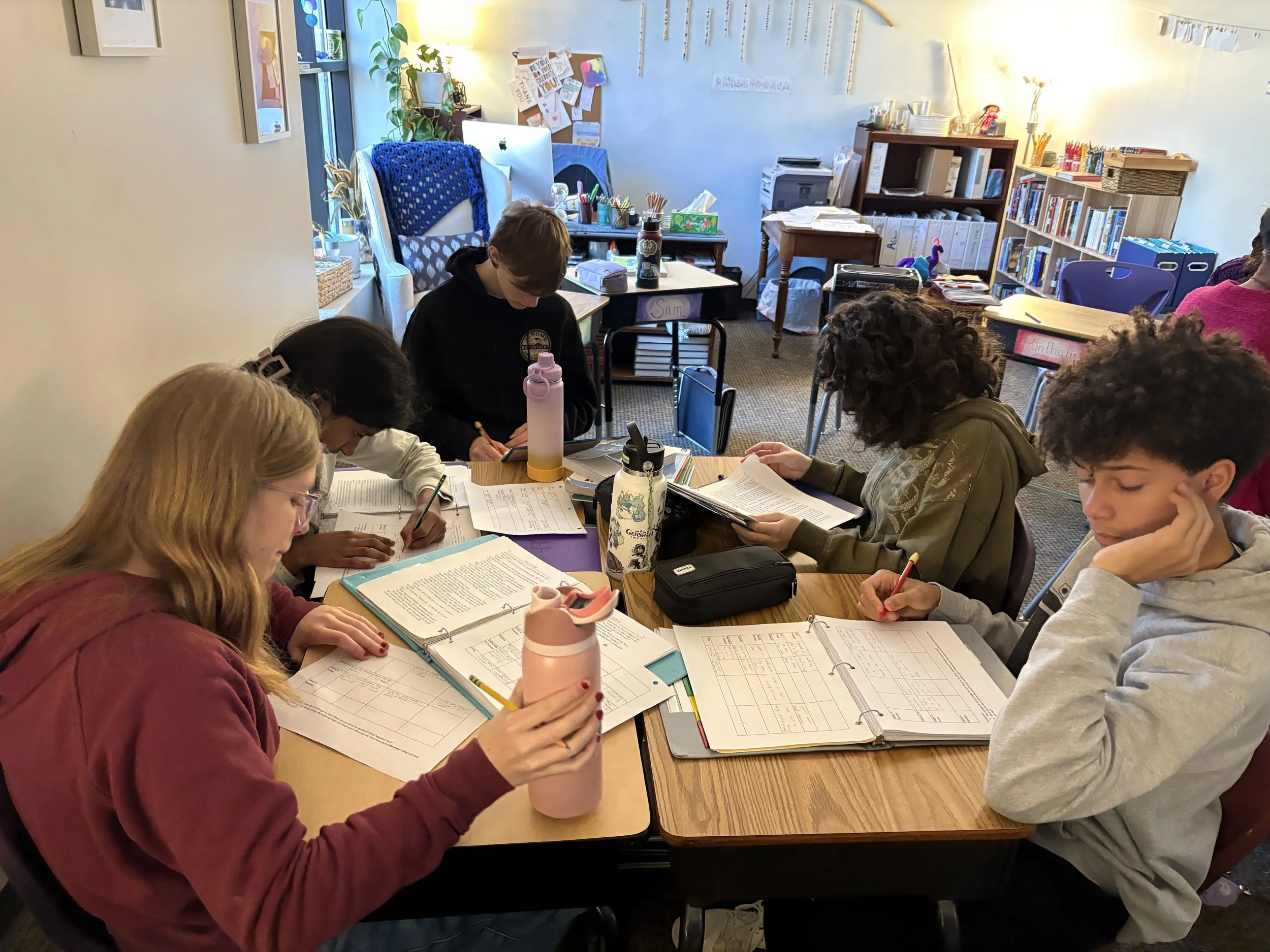 The class continues to delve into the elements of a short story. Last week, students focused on character and point of view. The class has read short stories from the first, second, and third points of view, analyzing the pros and cons of each type of narration. The class recognized the difficulty of writing from a second-person point of view, but agreed that for a particular type of story, such as seen in “First Day Fly” by Jason Reynolds, it can be a particularly powerful type of perspective.
