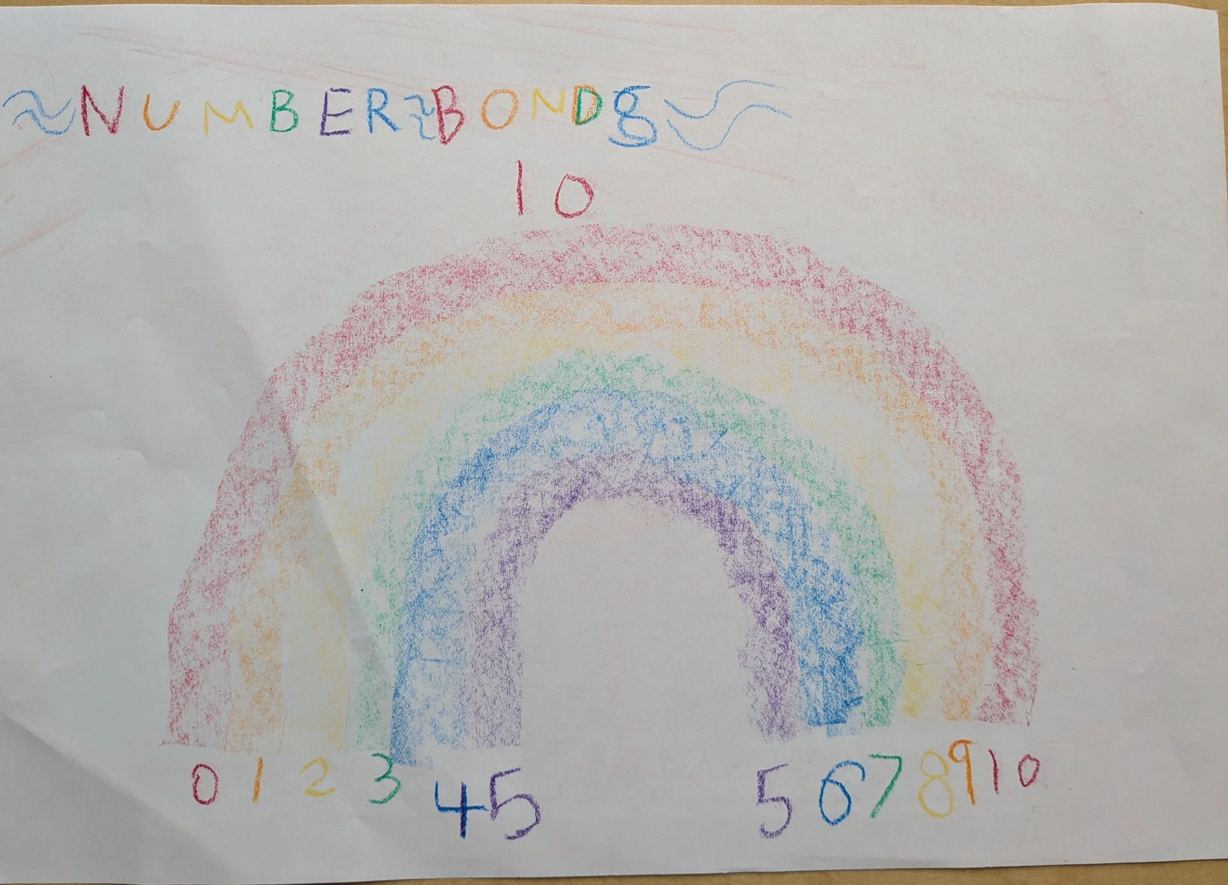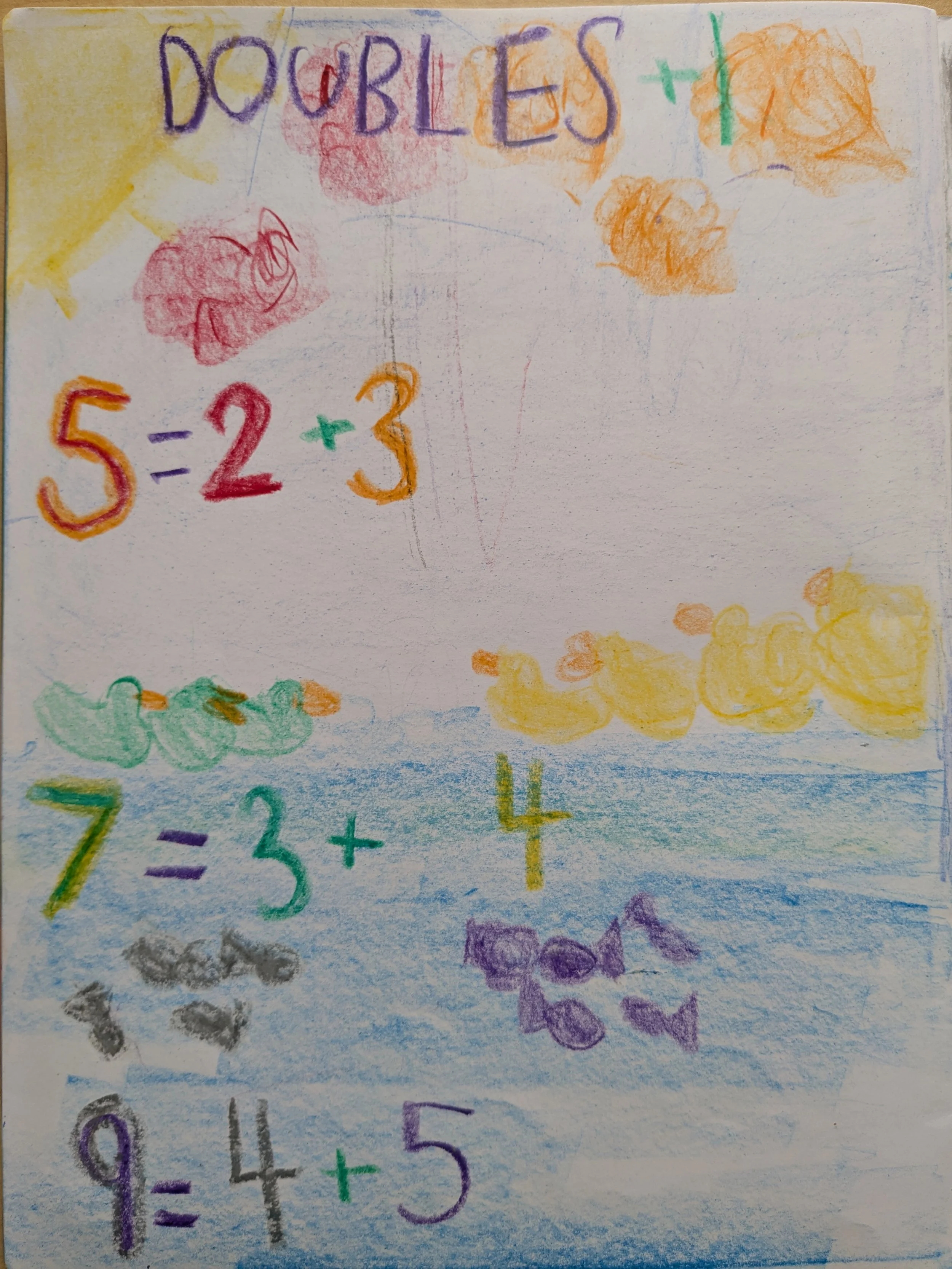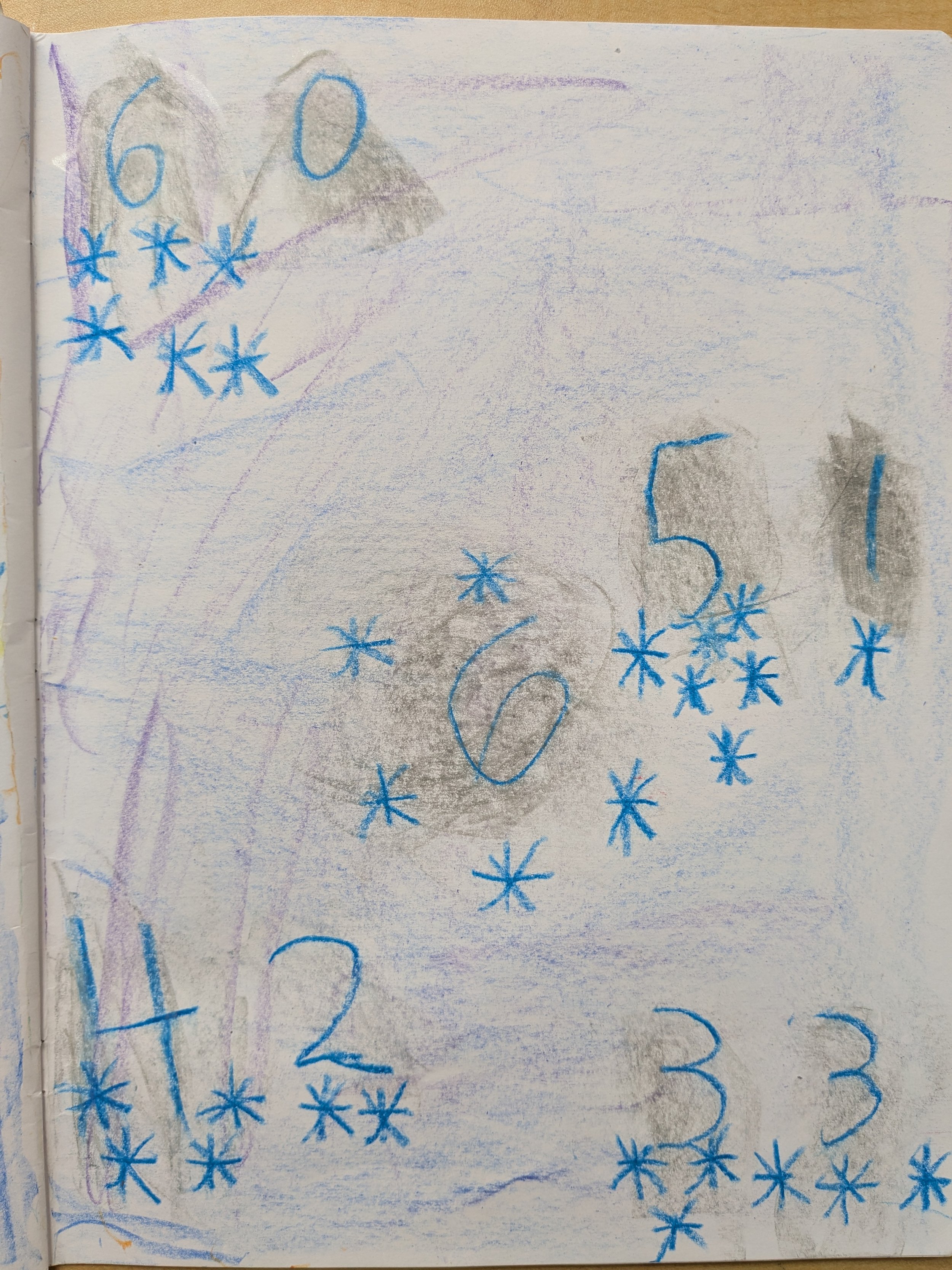 Last week, the class had a four-day week of math concept consolidation, snow imagery, and opportunities for improving their artistic skills. Students are becoming more comfortable with number bonds and using their math tools, including their desk number lines. Starting at a number and hopping their finger along the number line, students have gained a more concrete understanding of addition and subtraction. With repetition, they have realized that they need to hop from, not on, the origin number for an accurate count. The same concept applies with manipulatives and finger counting up and down. They are cultivating good math habits and number sense through this practice!