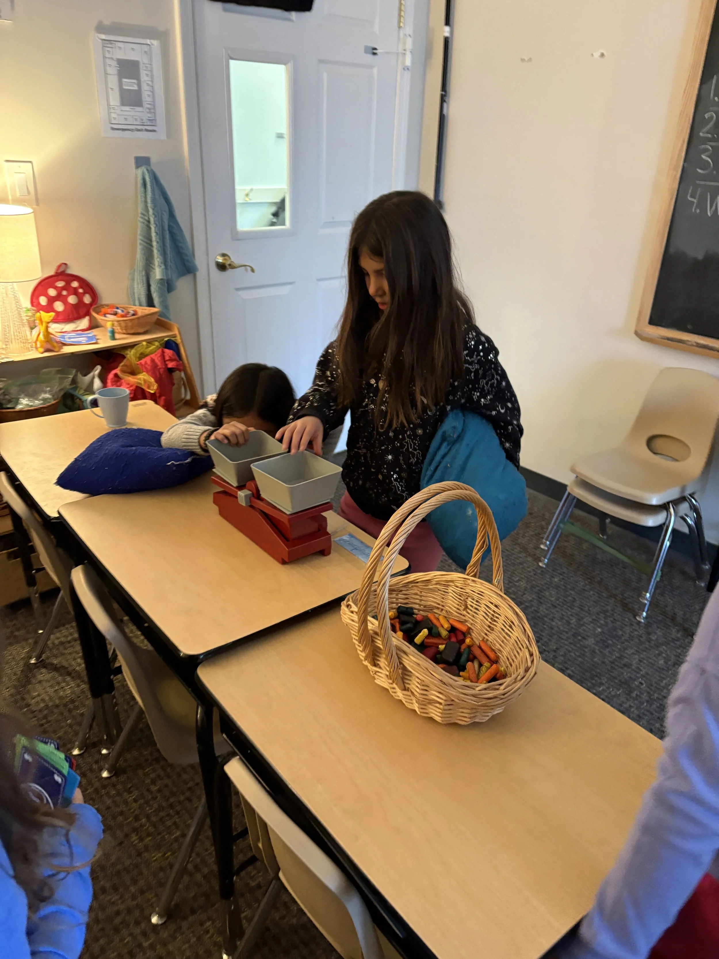 Last week, the class continued their study of measurement by learning about weight. On Monday, they spent time weighing different objects in the classroom and comparing them on a scale. The students explored making objects of equal weight, such as how many pencils equal the weight of one eraser, and learned that objects that take up the same amount of space do not always weigh the same, such as water weighing slightly more than vegetable oil. On Tuesday, they weighed their backpacks, and they discussed different places where scales are used, such as the post office, the airport, and the grocery store. On Thursday, the class built a small bird feeder, then measured its length and weight, and checked how much volume it would hold.
