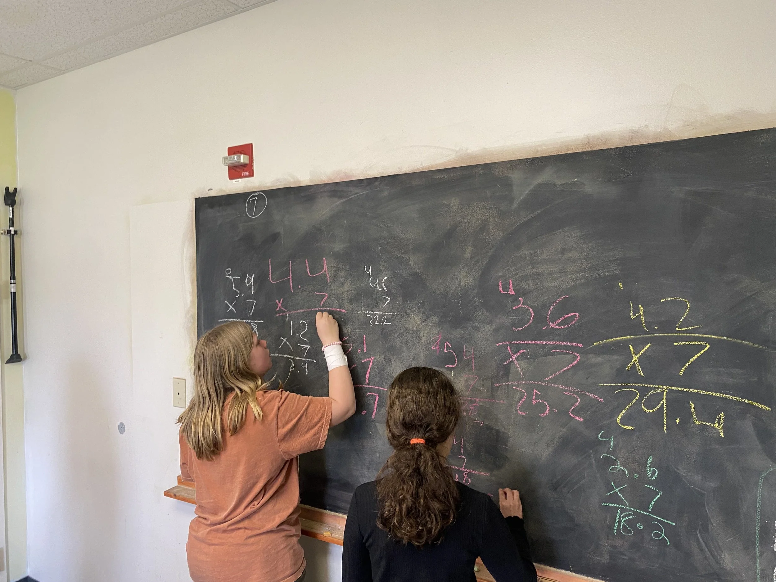 The class is continuing their studies in the Decimal Fractions block. The focus for this week was multiplying decimals by whole numbers. After overcoming the intimidation of the newness of decimals, students were able to understand how similar it is to multiplying two whole numbers, and they were able to have ample individual practice with the interactive activities that were done in class. The class practiced multiplying decimals with a tower-building relay race. The students also utilized their listening comprehension skills by solving word problems given orally. In the upcoming week, the students will continue with multiplication practice for a few more days, and then will begin the introduction to dividing decimals.