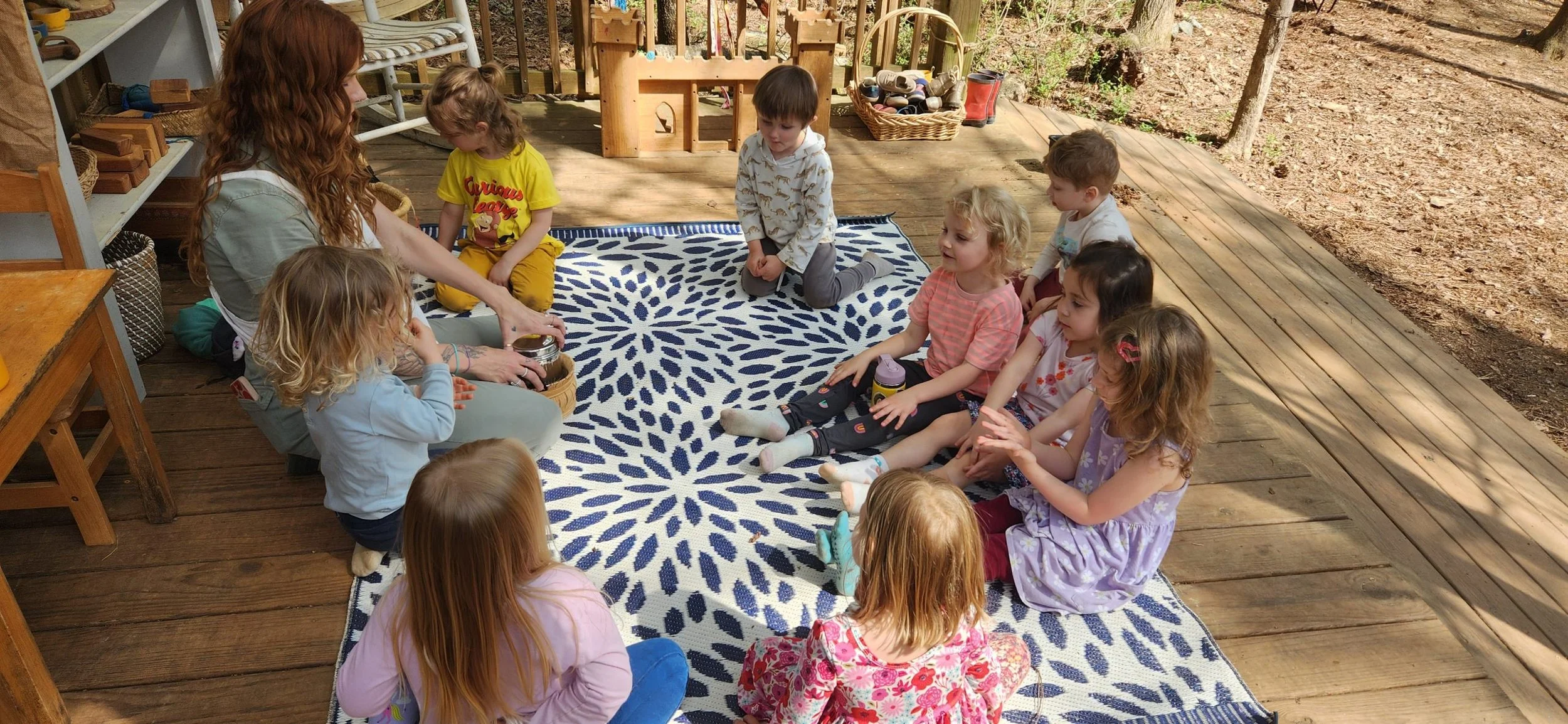 The children were busy at work and play last week, evidenced by rosy cheeks and restful sighs as we enjoyed our afternoon “in-breath” on the platform after forest free play each day. In Waldorf education, there is a strong emphasis on designing the rhythm of the school day to feel very much like breathing; steady, natural, and intricately balanced. “In-breaths” are often described as moments of drawing inward: quiet, nourishing, and restorative experiences (in early childhood, directed by the adult), such as circle, storytelling, shared snacks/meals, watercolor painting, etc. “Out-breaths” invite expression and expansion, seen in unstructured/imaginative play, running, climbing, digging, and other forms of outdoor exploration.