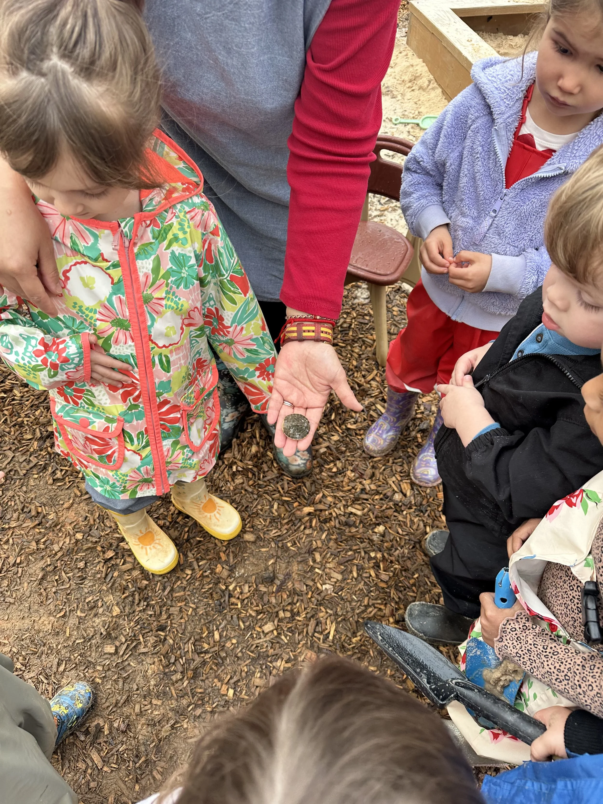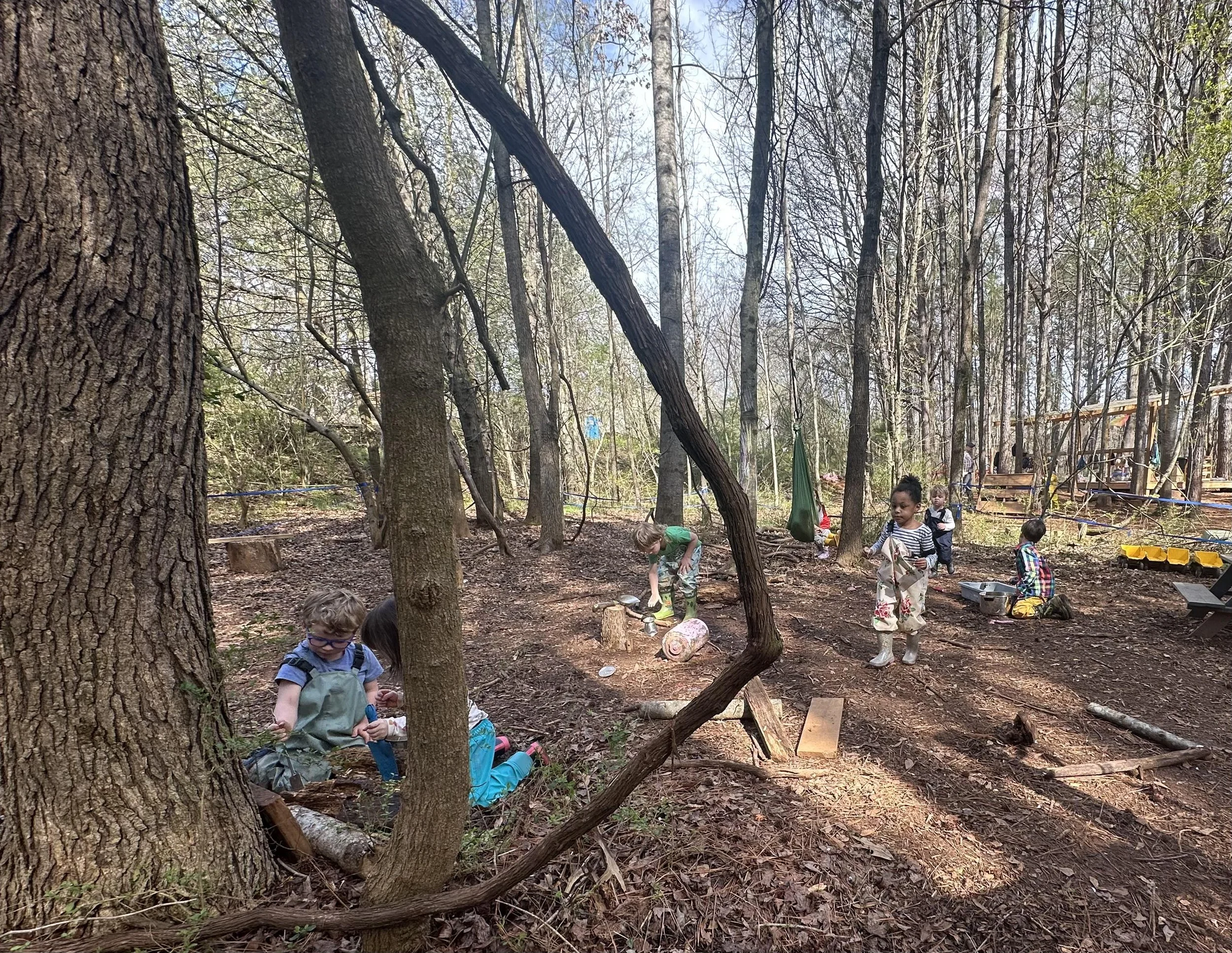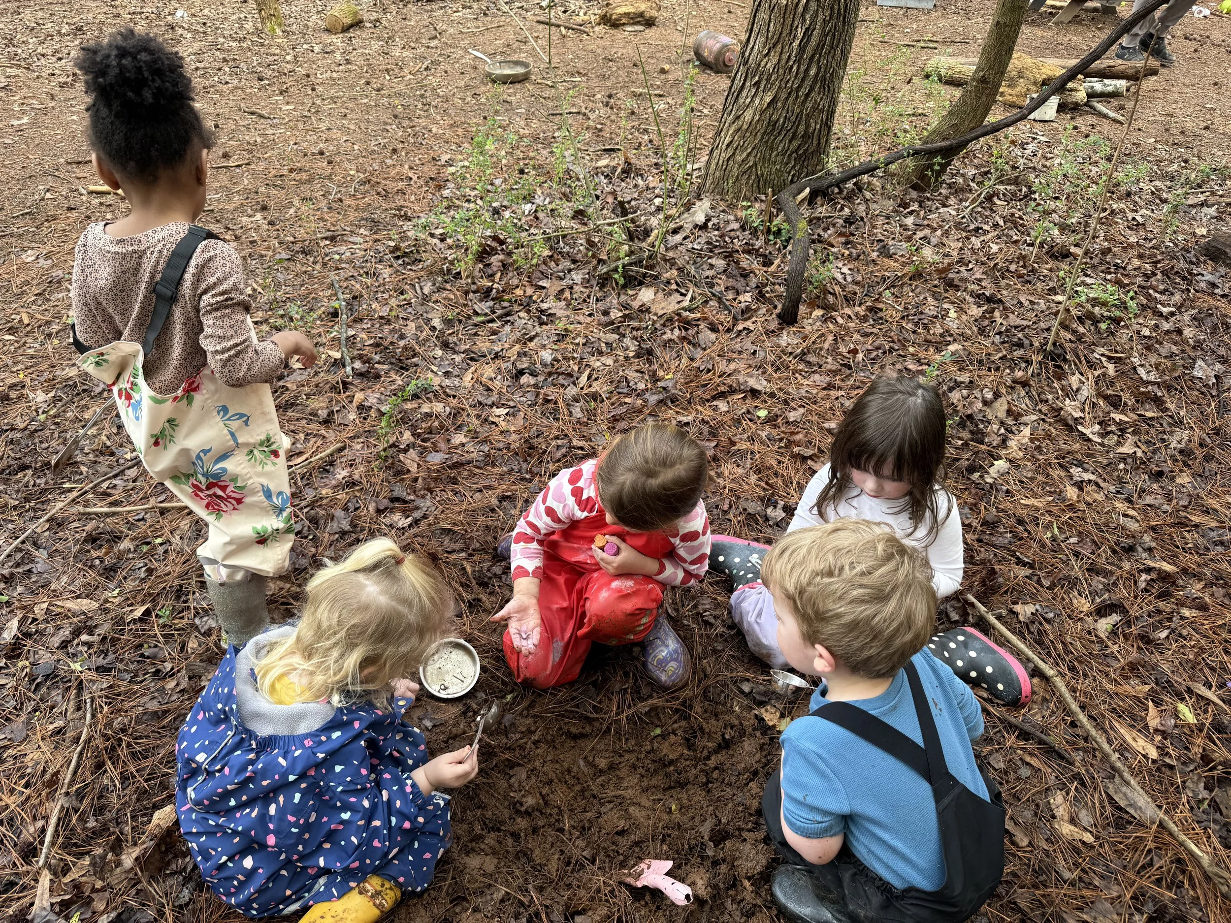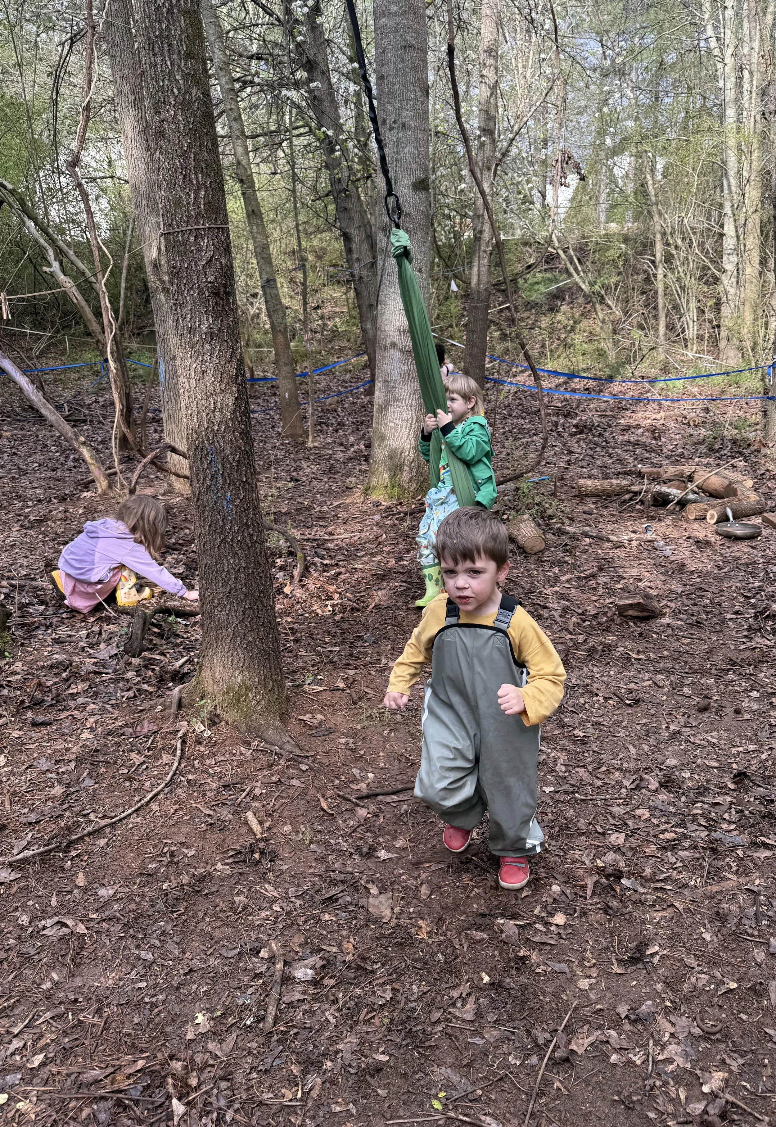 Last week, the warm spring weather brought joy and energy. We noticed flowers beginning to bloom and heard frogs singing by the pond. Earlier in the week, we also discovered baby box turtles in the sandbox. The children observed all with great curiosity and learned how to gently touch them before we returned them to nature.